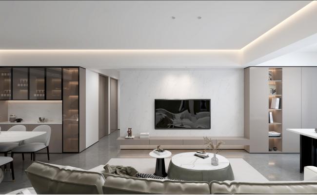 比生活更重要的,是生活的方式。以設計構建最愜意的形態,打開生活的多面可能,然后浸潤到家的每一個細節。 本案例是一套具有代表性極簡案例,以素雅色系聚合的整體起居空間,是家中的核心場域。由開放式廚房、陽臺閱讀區和中心休閑天地組成,拆除掉所有非承重墻之后呈現的一體化設計中,設計師希望通過光的角度、動線的規劃和家具裝飾的合理搭配,重新定義“家”的情緒和細節:突破了以往“客廳+餐廳”的固定組合模式,以互相通融的動感,給整體區域帶來更開闊的視野和更新鮮的空氣。心的安寧,就此而生。