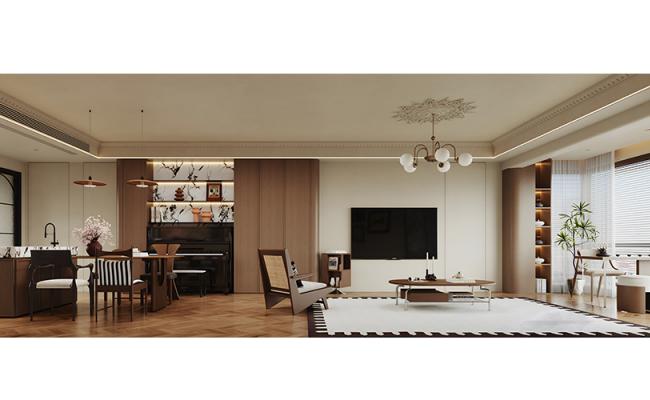現(xiàn)代風格空間設計理念 本空間以「溫潤極簡·自然共生」為核心,以米白、淺木色構(gòu)建柔和基底,弱化硬朗線條,營造松弛的居住氛圍。開放式布局結(jié)合挑高空間,最大化引入自然光線,讓視野通透舒展。木質(zhì)感柜體與簡約軟裝相融,摒棄冗余裝飾,以“少而精”的設計邏輯,平衡現(xiàn)代美學的利落與自然材質(zhì)的溫度,打造兼具實用與詩意的生活場域。