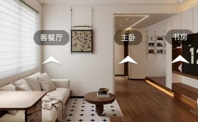 我們以 “暖白+原木” 為基調,摒棄繁雜,讓材料本身訴說溫柔。整個家不見頂天立地的壓迫式柜體,每一個功能模塊都化為輕盈的“懸浮盒子”,在光影交錯間,營造出通透、靈動的層次感。