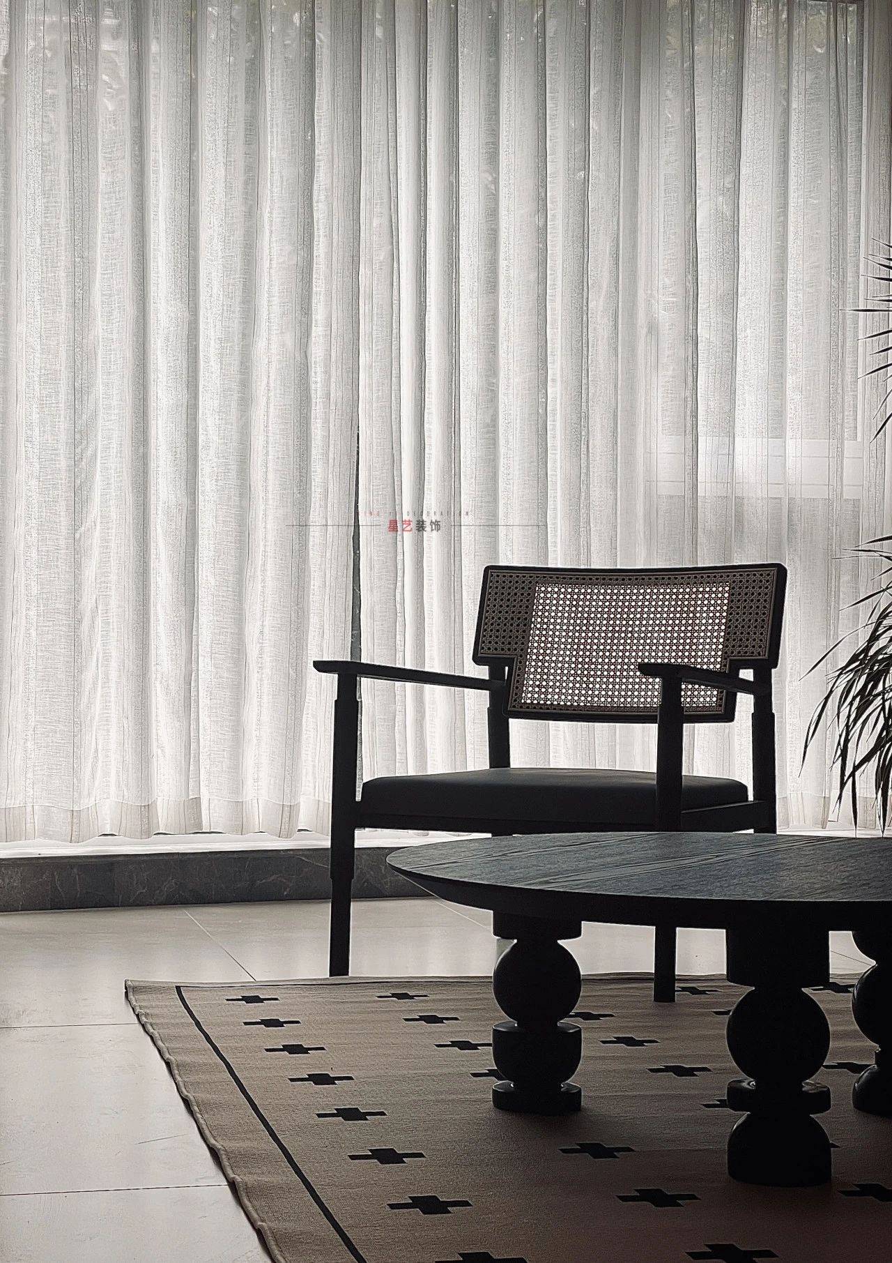 黑胡桃木色家具,藤編工藝,復古的燈,還有營造夢幻光影的紗簾,無一不彰顯出精致生活的儀式感。