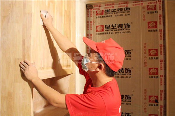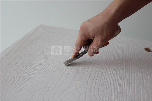 底漆干透后,用600#砂紙輕磨,以磨平附著在飾面板表面的灰塵顆粒即可。